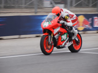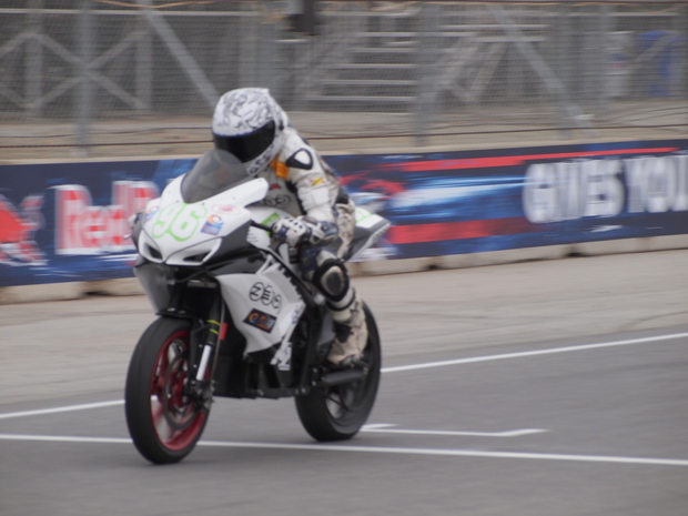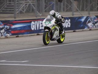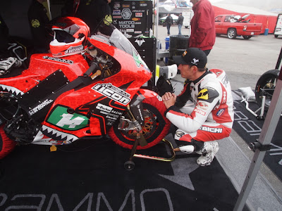 That took out two riders – Moreda and Rich, who were part of the trio that was going to be contesting 3rd place. Moreda’s bike was scraped up pretty bad on the left side, and her leathers were muddied, but both her and Ted Rich were fine. Rich even raced in the AMA Superbike race shortly later.