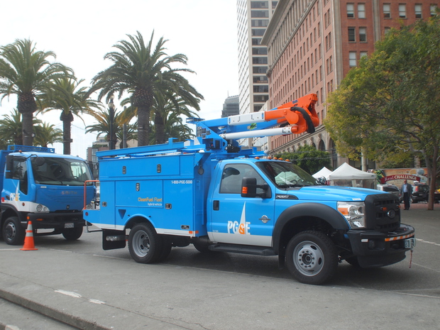 It’s a little hard to read though, but on the side it’s painted with a logo saying this truck is part of PG&E’s clean fleet, and that it’s a Hybrid.