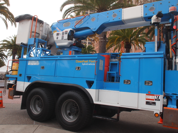The system is a big win because instead of keeping the engine idling while the worker is working, the work rig is electrically powered. Fuel use and emissions output are drastically reduced. While the rig adds a lot to the cost of the truck, PG&E’s Dave Meisel says the trucks pay for themselves in 3 years thanks to fuel and maintenance savings.